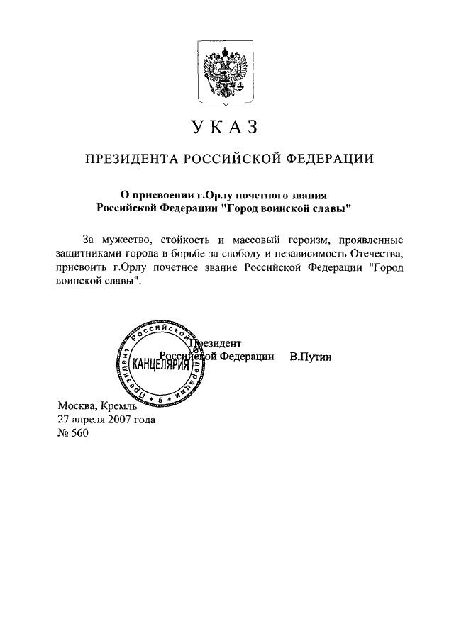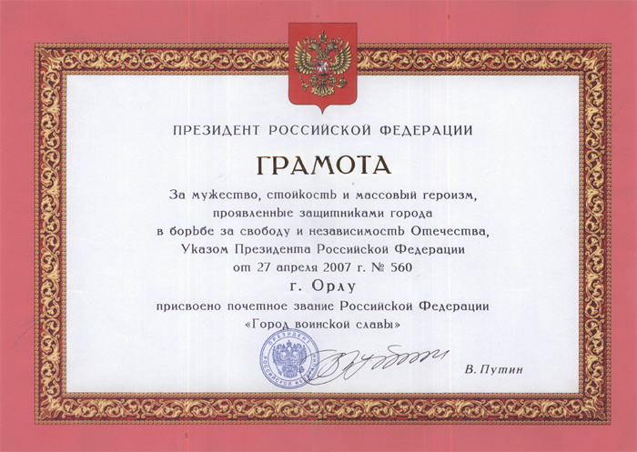 Орел - город воинской славы |